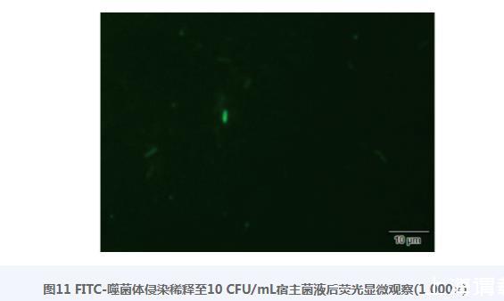 圖11 FITC-噬菌體侵染稀釋至10 CFU/mL宿主菌液后熒光顯微觀察(1 000×)
