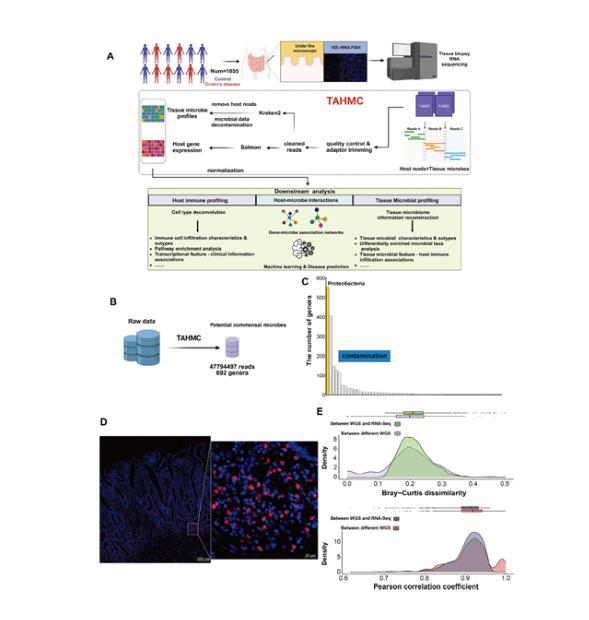 轉(zhuǎn)錄組分析宿主-微生物相互作用(TAHMC)技術(shù),作為一種新興的研究手段,具備從批量RNA-seq數(shù)據(jù)中同時恢復宿主基因表達和微生物定量信息的潛力。但此前該技術(shù)在克羅恩病研究中的應用較少,其在揭示腸道微生物與宿主基因表達關(guān)系方面的能力尚未得到充分挖掘。部分研究對其數(shù)據(jù)處理和分析方法存在質(zhì)疑,認為可能存在誤差影響研究結(jié)果的準確性。研究團隊以探究克羅恩病中組織駐留微生物與宿主基因的關(guān)聯(lián)為目標,試圖借助TAHMC技術(shù)解開這一謎團。