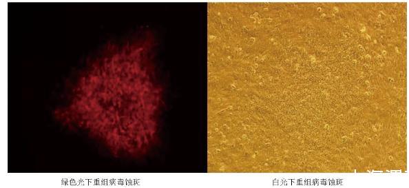 圖2表達(dá)紅色熒光的重組DEV病毒