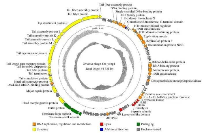 ▲圖2 Yersinia phage Yen-yong1的基因組圖譜