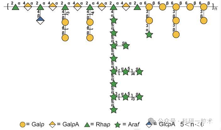 這些發(fā)現(xiàn)表明,該多糖的主鏈由1,4-GalpA、1,2-Rhap(或1,2,4-Rhap)和1,6-Galp組成。